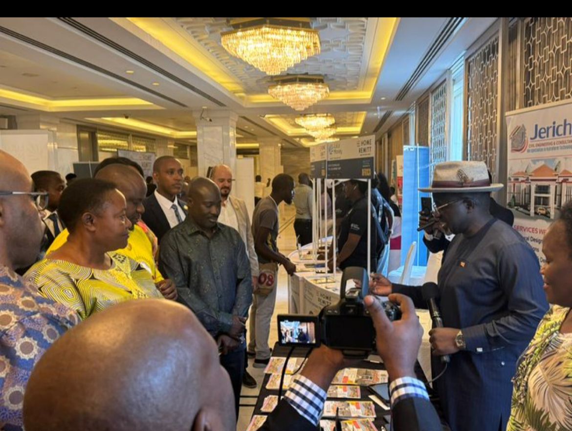 Senior Presidential Advisor and Head of the State House Diaspora Unit, Mohammed Bagonza, together with Hon. Balaam Barugahara, Minister of State for Youth, and Hon. Milly Babalanda, Minister for the Presidency, inspected exhibition stalls at the ongoing Uganda–UAE Convention at the Hyatt Regency Hotel, Dubai.