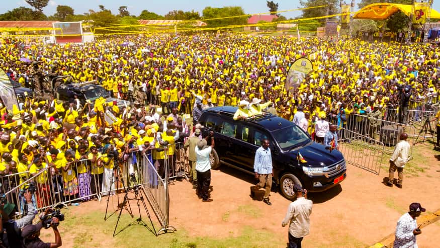 Speaking during a campaign rally at Kagulu Primary School grounds in Buyende District, President Museveni described the NRM as a party built on hard work, discipline, and commitment to national transformation.