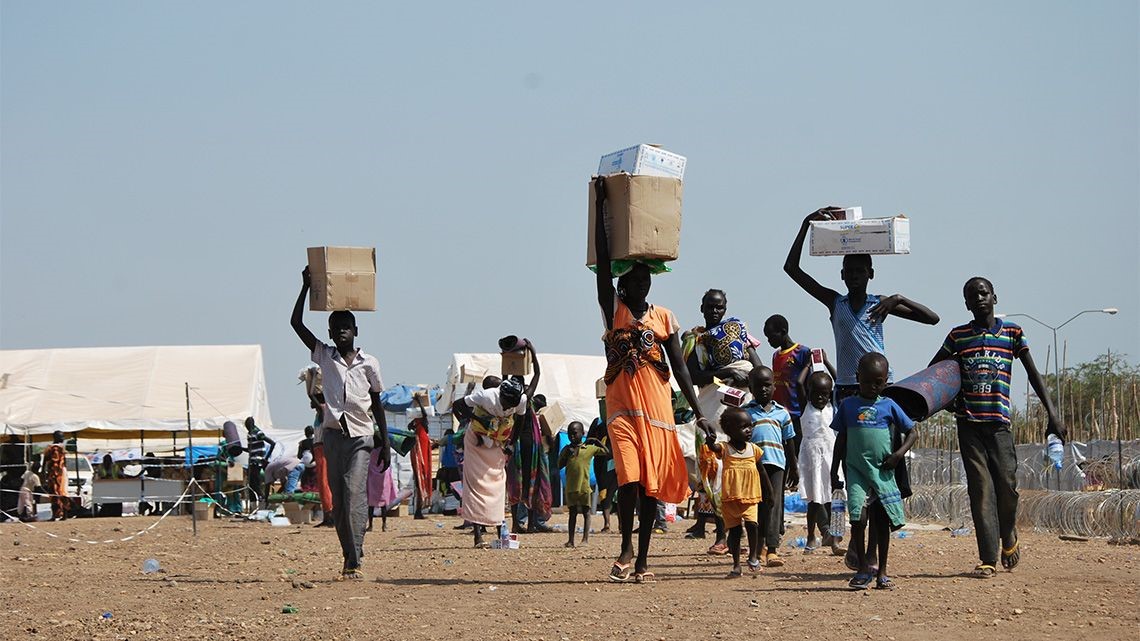 Displaced Persons in Sudan leaving the distribution centre after receiving their portions. In the last 3years the war in Sudan has claimed over 150,000 lives.